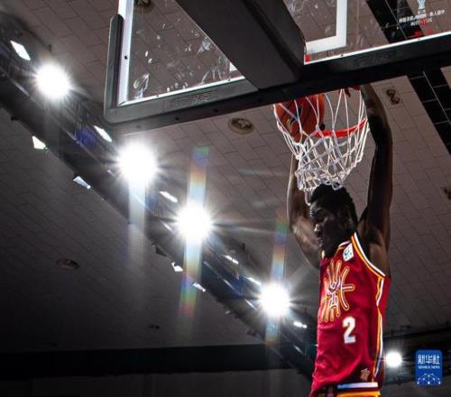 12月7日,山西汾酒队球员诺威尔在比赛中扣篮。新华社记者 肖艺九 摄