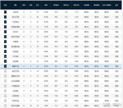 CBA积分榜